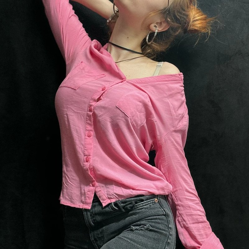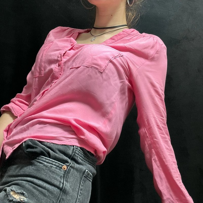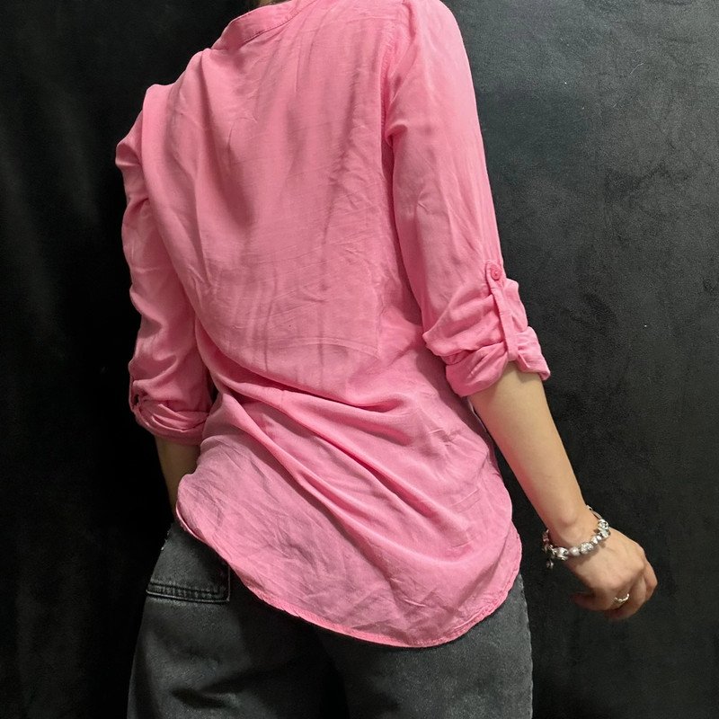 Cămașă elegantă de culoare roz, material mătăsos și ușor.