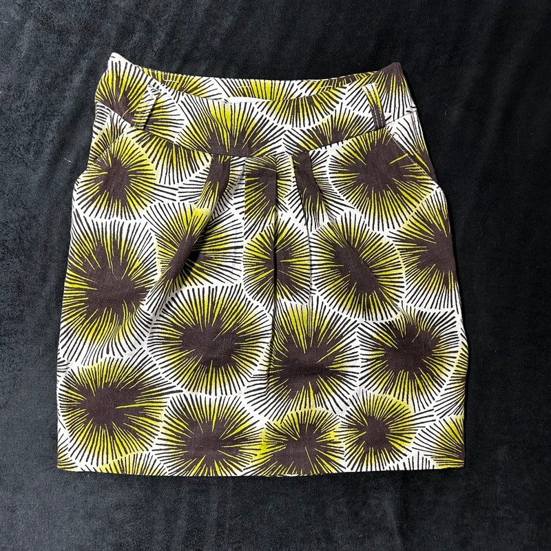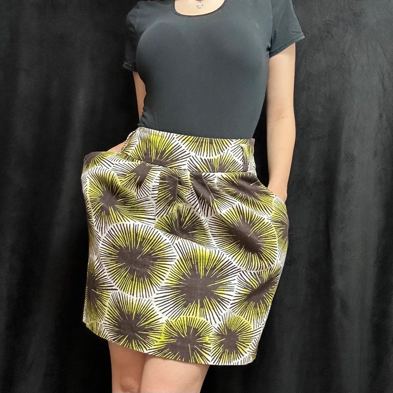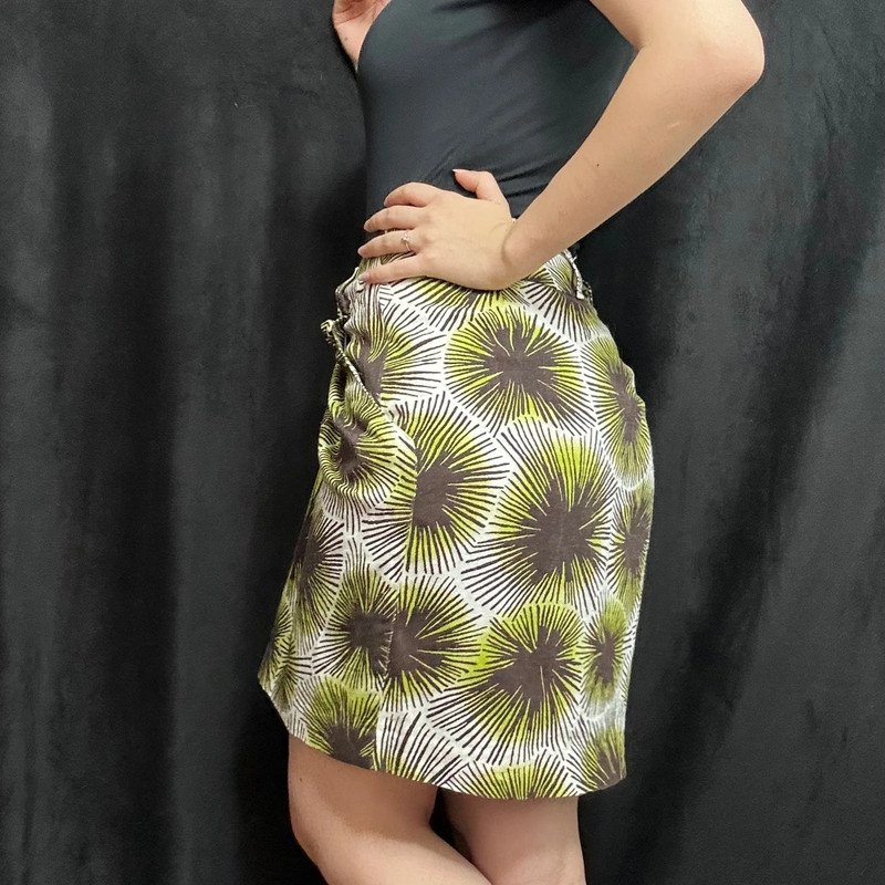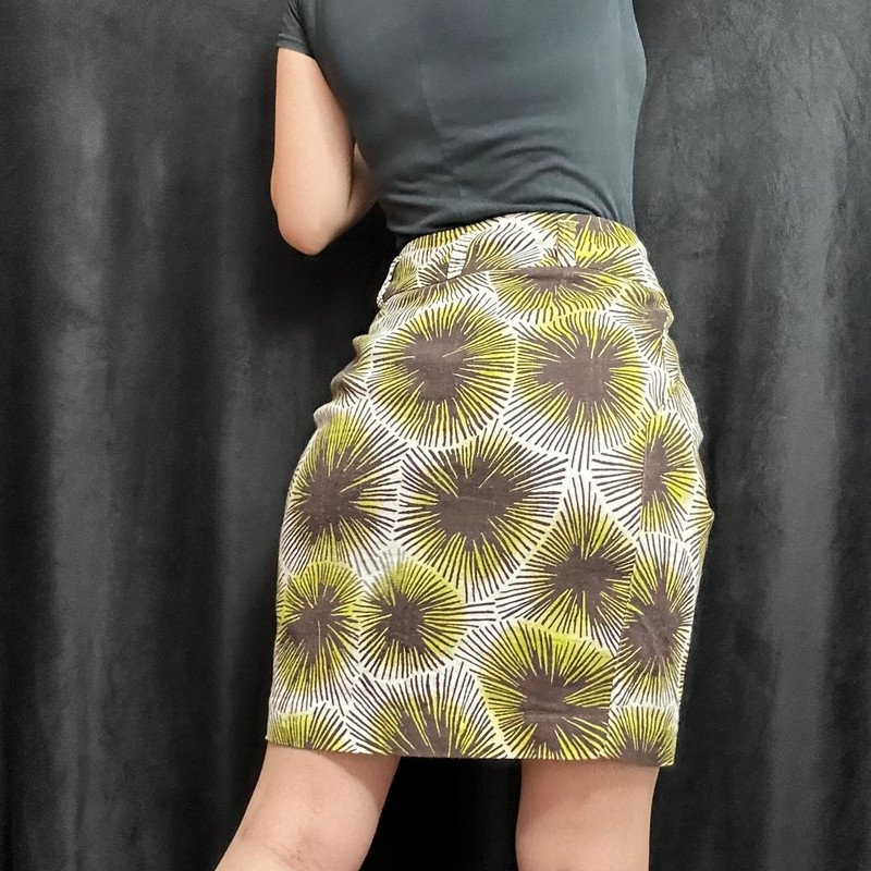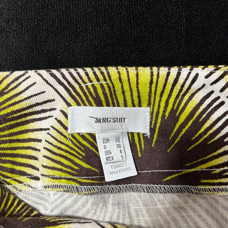 Fustă midi dreaptă albă cu model de plante verzi Mango Suit