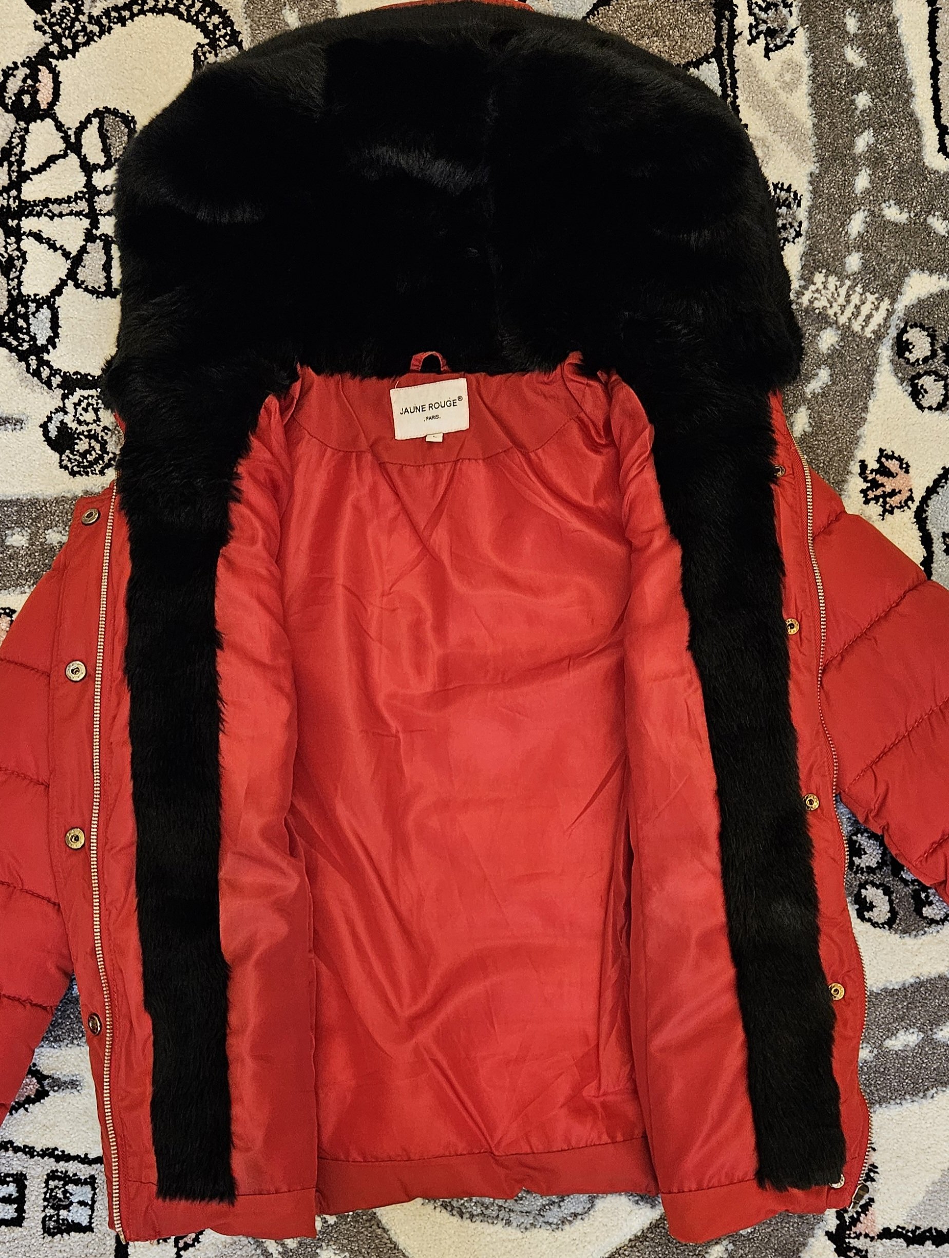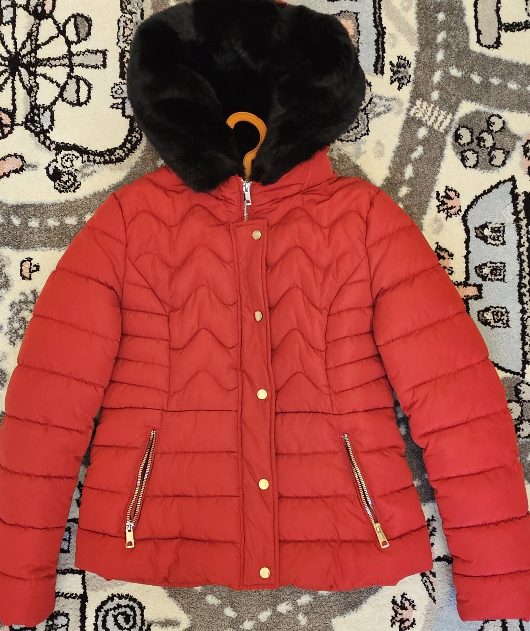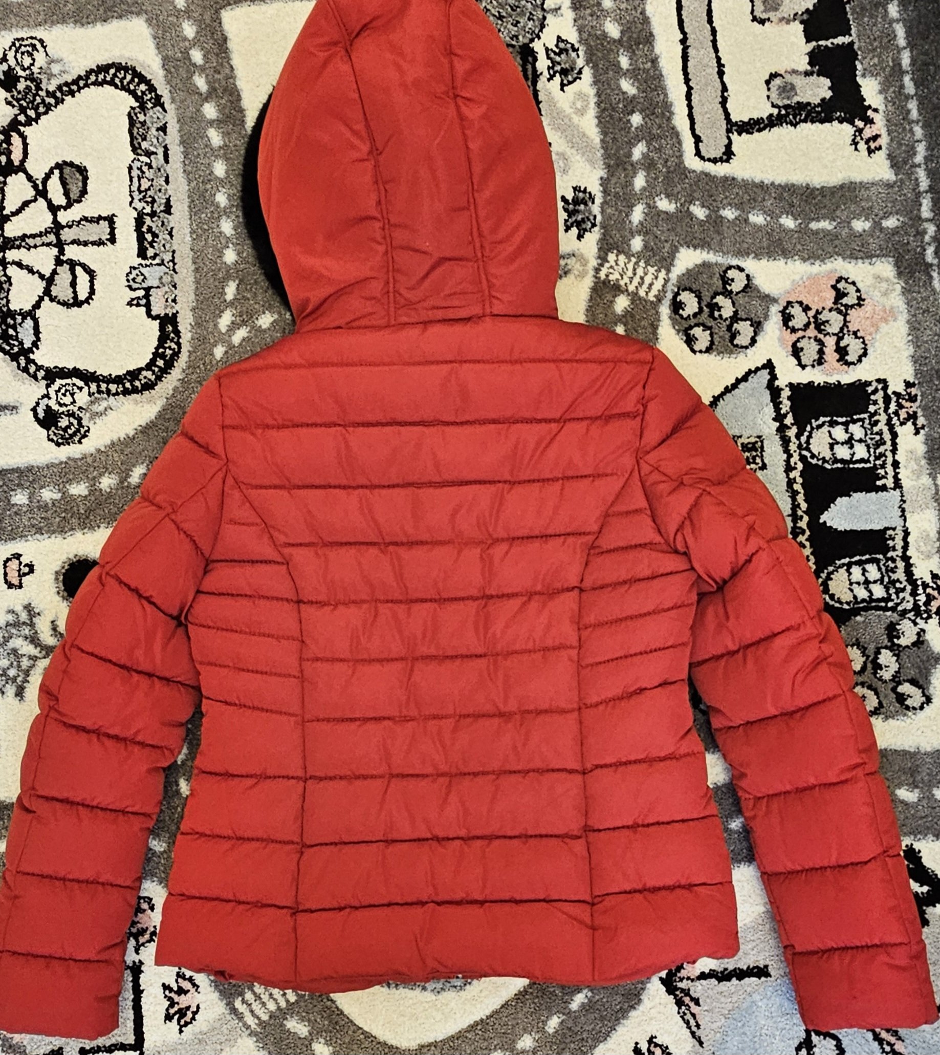 Geacă mărimea M-L, glugă foarte călduroasă, purtată rareori.
